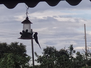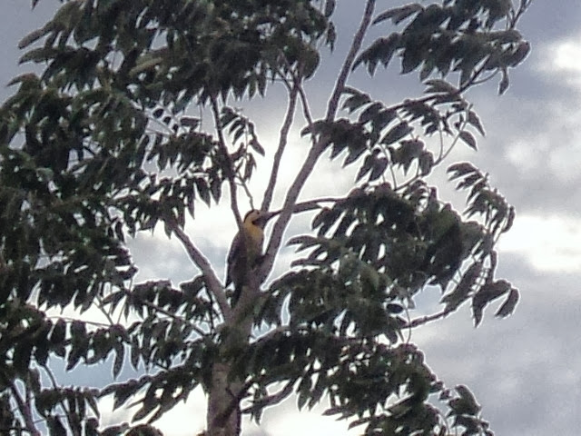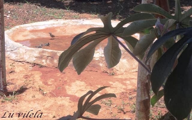 .Imaginem que surpresa boa. Avistei uma seriema. A sorte é que eu ando sempre com uma câmera quando estou no sítio. Parecia assustada, mas a sede era maior, também com tantos meses sem chuva. Vejam que ela olha para os lados, e é sempre assim, ao menor sinal de movimento ela sai de mansinho e some na mata.